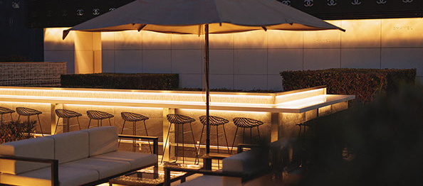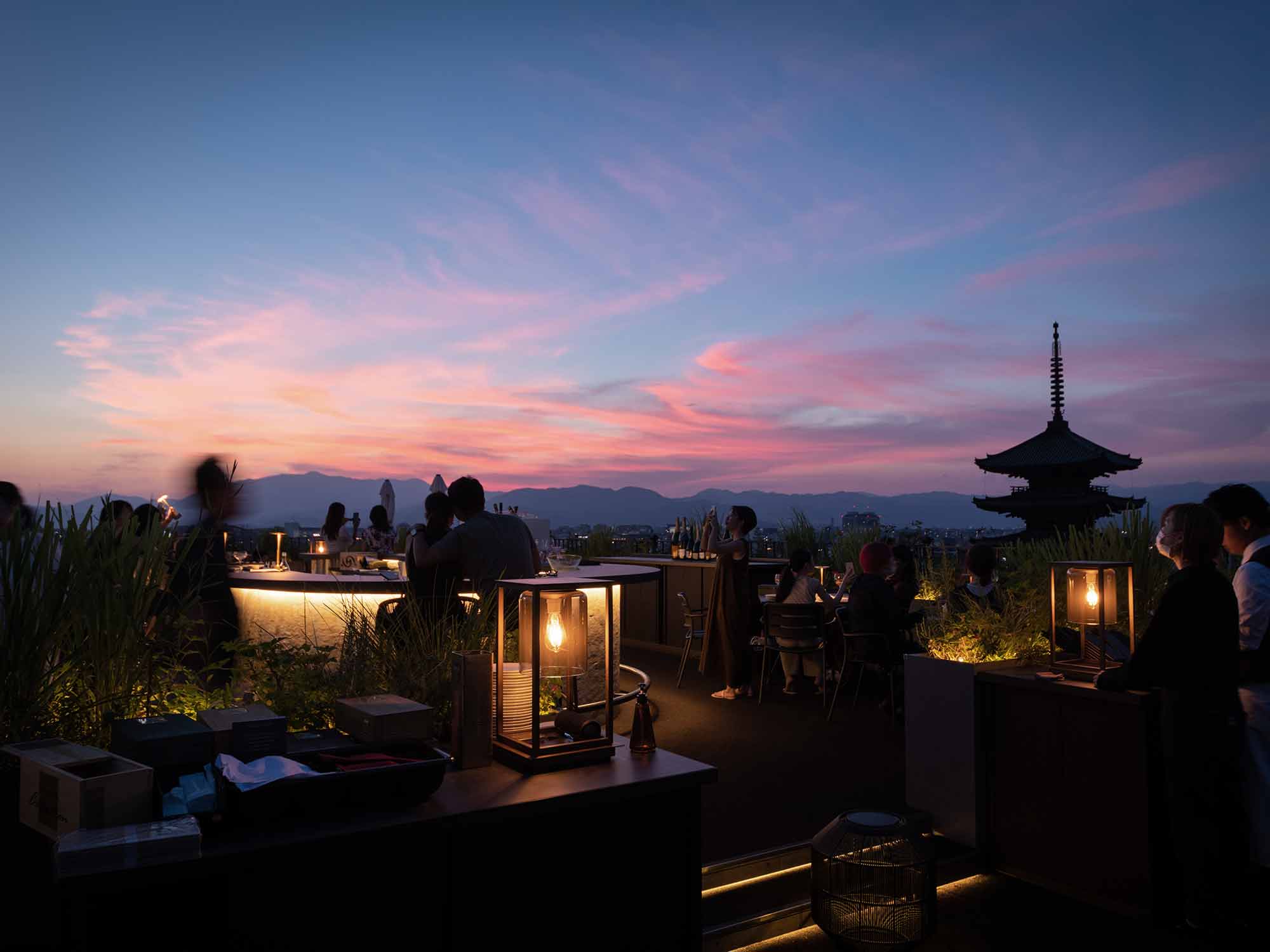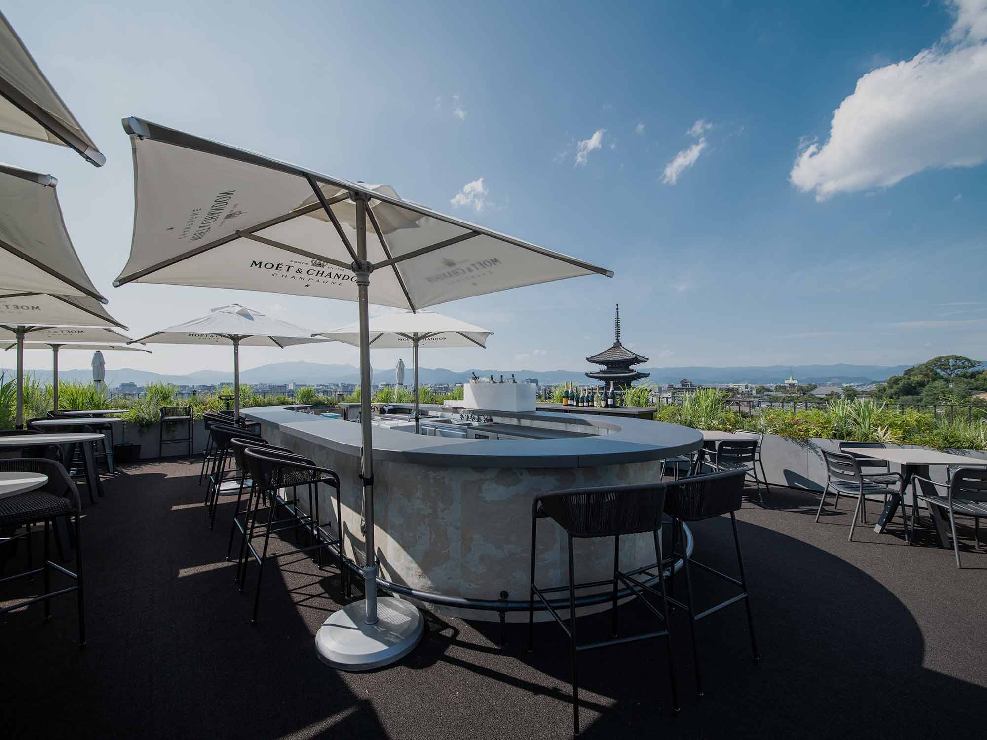 新たに登場したテラスの壁面に配されたアイコニックなロゴを背景にしたバーカウンターでは、シャンパーニュやカクテルの他、京都の伝説的バーテンダー西田稔氏(「BAR K6」、また「ザ・ホテル青龍京都清水」最上階のバー「K36 THE BAR & ROOFTOP」を監修)が監修するドリンク、フィンガーフードやスイーツもご用意しております。シャンパーニュやカクテル、フィンガーフードやスイーツなど、銀座の天空で季節を感じながら、特別なひと時をご堪能ください。