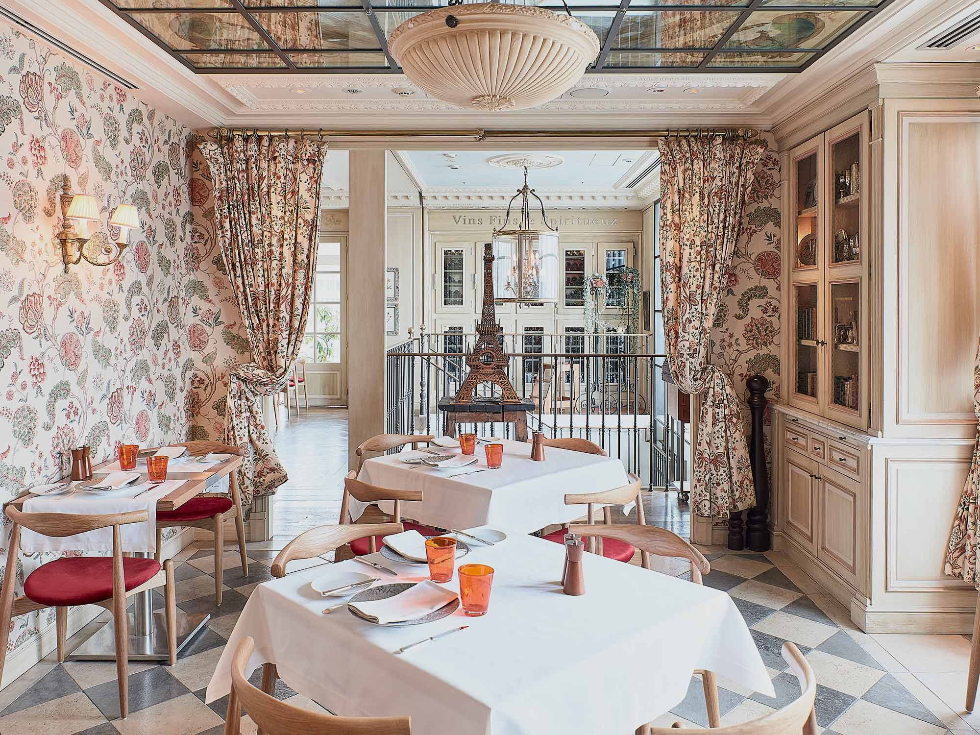 “ツイードの庭”を意味する屋上テラス「ル・ジャルダン・ドゥ・ツイード」。名前の通り、ツイード柄に刈り込まれた草木に囲まれた庭園が開放的でエレガントな空間を演出します。