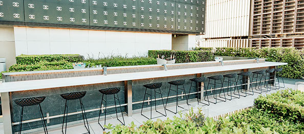 新たに登場したテラスの壁面に配されたアイコニックなロゴを背景にしたバーカウンターでは、シャンパーニュやカクテルの他、京都の伝説的バーテンダー西田稔氏(「BAR K6」、また「ザ・ホテル青龍京都清水」最上階のバー「K36 THE BAR & ROOFTOP」を監修)が監修するドリンク、フィンガーフードやスイーツもご用意しております。シャンパーニュやカクテル、フィンガーフードやスイーツなど、銀座の天空で季節を感じながら、特別なひと時をご堪能ください。