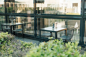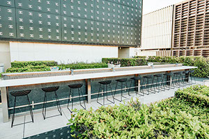 “ツイードの庭”を意味する屋上テラス「ル・ジャルダン・ドゥ・ツイード」。名前の通り、ツイード柄に刈り込まれた草木に囲まれた庭園が開放的でエレガントな空間を演出します。
