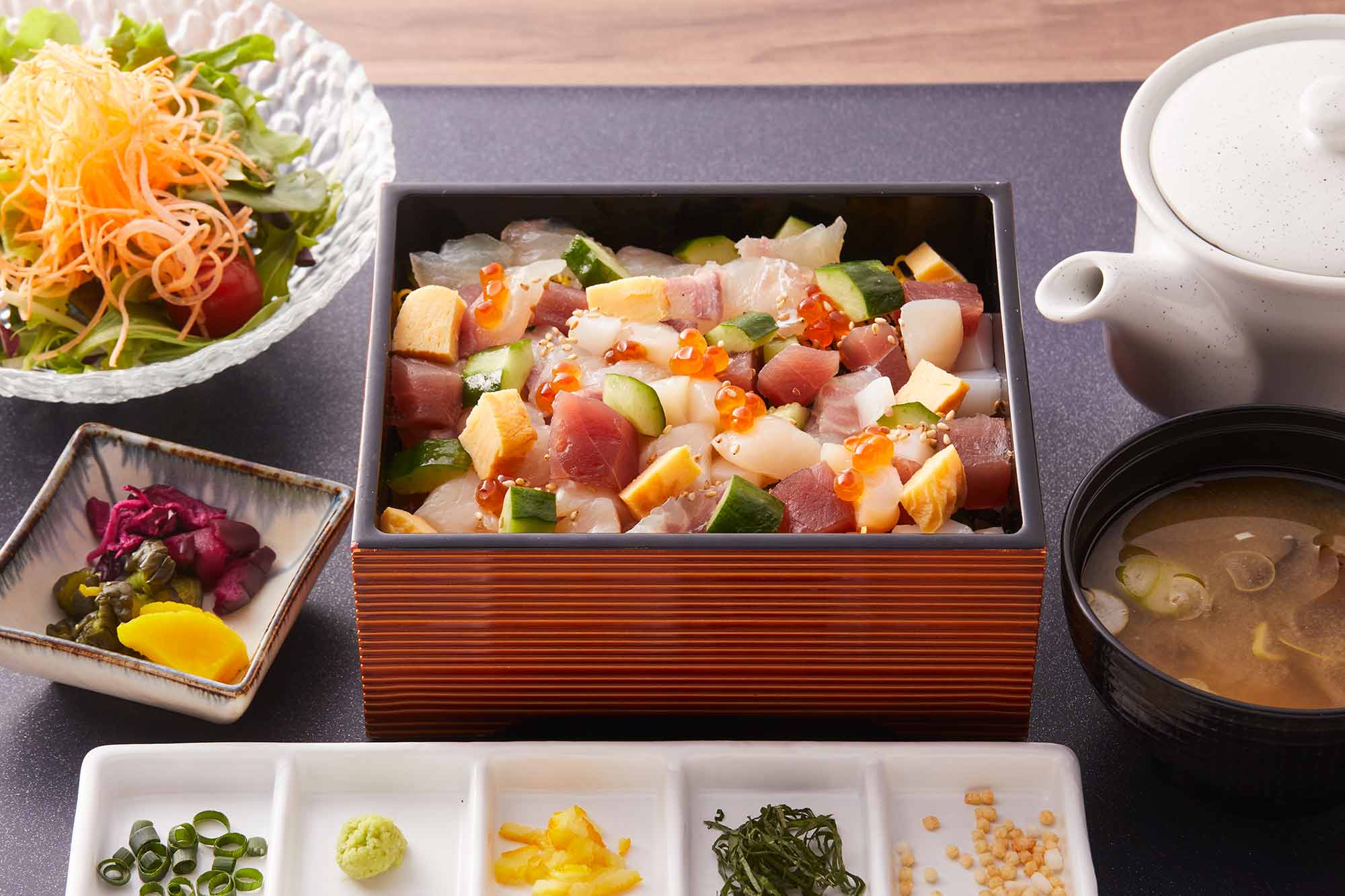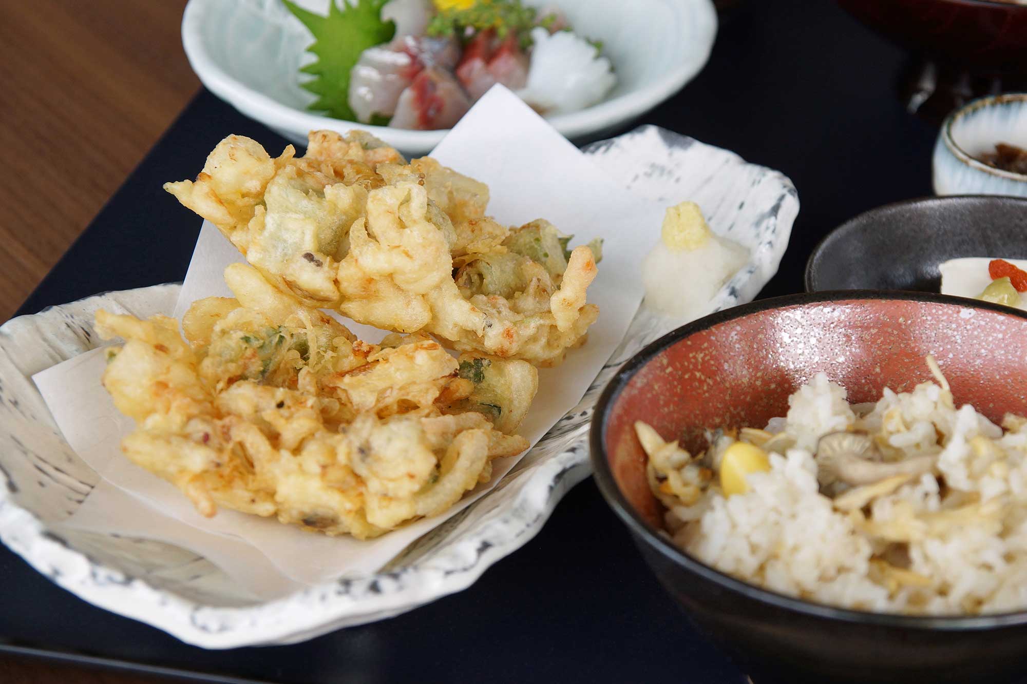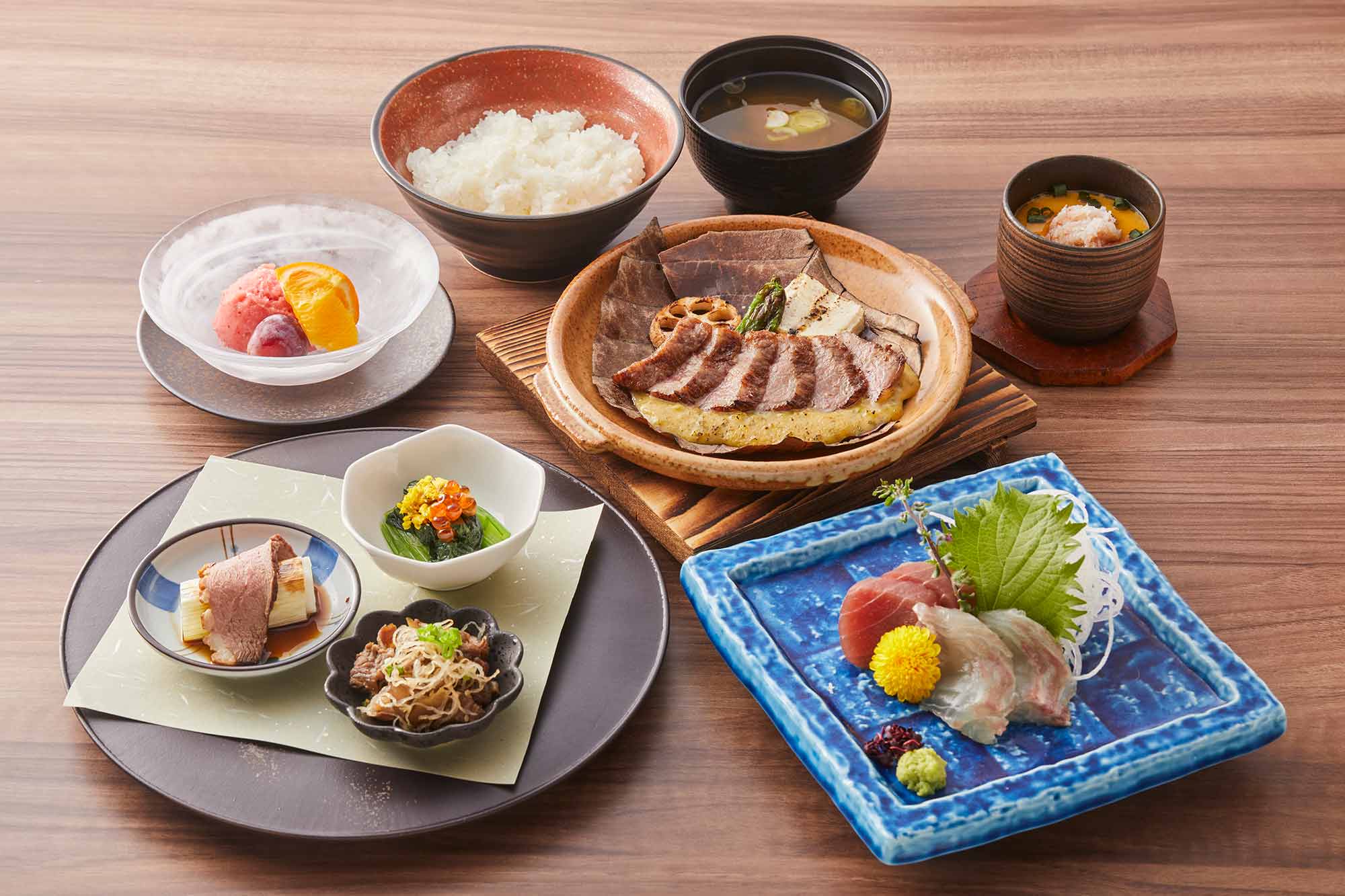 蕎麦、天ぷら、刺し身など新鮮で厳選された素材を使った和食のア・ラ・カルトメニューをはじめ、コースもご用意しております。